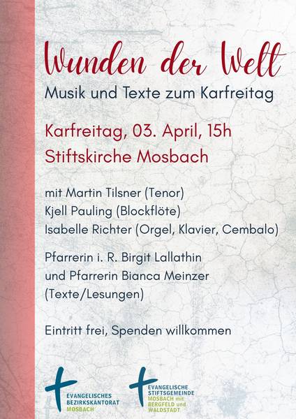 „Wunden der Welt“ – Musik und Texte zum Karfreitag in der Stiftskirche Mosbach
