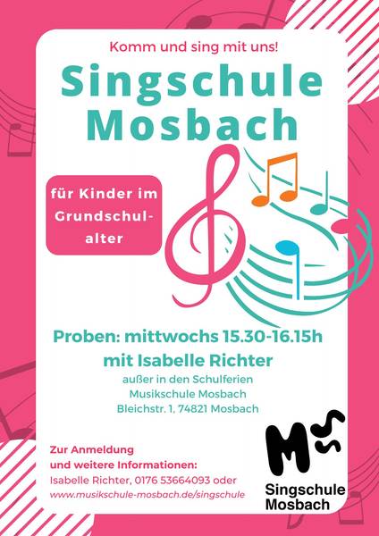 Gemeinsam singt es sich schöner und zusammen lässt sich mehr erreichen! Die Musikschule und das Evangelische Bezirkskantorat gehen deshalb einen neuen Weg in der Kinderchorarbeit. Nach einem Vorbild aus Eberbach gründen sie die Singschule Mosbach.