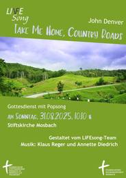Im Mittelpunkt des etwas anderen Gottesdienstes steht das bekannte Lied „Take Me Home, Country Roads“ von John Denver. Der Gottesdienst wird vom LIFEsong-Team vorbereitet, musikalisch begleitet von Klaus Reger und Annette Diedrich. Eingeladen sind alle, die sich von modernen wie traditionellen Klängen und spirituellen Impulsen berühren lassen möchten.